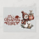 It's Christmastime Snowman Holding Gift and Mouse Postcard