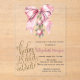 Cute baby shower invitation features a pink bow with Christmas balls. These baby shower invitations are easily customized for your event by simply adding your details.