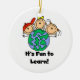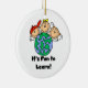 Three stick figure kids surround a world globe and text reads "It's Fun to Learn!" on school themed T-shirts, cards, mugs, stickers, buttons, and other gear!