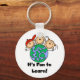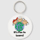 Three stick figure kids surround a world globe and text reads "It's Fun to Learn!" on school themed T-shirts, cards, mugs, stickers, buttons, and other gear!