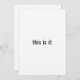 This simple minimalist modern black and white rehearsal dinner invitation features the simple words "this is it" on the front and the rehearsal dinner information on the back. Easy to customize with your text. More items with this design can be found in my It's Happening Minimalist Photo Wedding Suite in my Zazzle store: