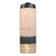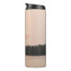 Travel mug for cold or hot with a sunset over the lake, with a sunny reflection across the water in peach landscape.