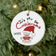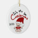 A baby in a red stocking cap and polka dotted diaper with text that reads "It's My 1st Christmas" on a holiday ornament that you can easily change the date on before ordering.
