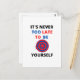 IT'S NEVER TOO LATE TO BE YOURSELF MOTIVATION POSTCARD