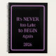 'It's NEVER too Late to BEGIN Again 2026' phrase