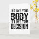 Text design with the quote "It's not your body It's not your decision". Stand up for human dignity, gender equality, women's rights and self determination.