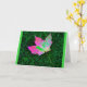 A photograph of a single pink hued autumn leaf, photographed against bright green grass, is the subject of my "It's Time To Leaf Another Year Behind! funny Birthday Card.