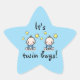These charming stickers in star shape feature two whimsical baby boys with an "It’s twin boys!" message on a soft blue background, great for celebrating a pair of new arrivals.