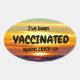 This item proclaiming that "I have been VACCINATED against COVID=19" can reassure your customers, patients, or passersby that you are protected and not likely to spread the COVID virus. This message is printed on a backdrop of a beautiful Pacific Northwest coastal sunset. Could be worn by doctors, nurses, technicians, IT staff, waitresses, waiters, servers, cooks, or other service people to put their clients at ease.