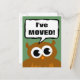 I've move new address postcard | cute brown owl cartoon. Custom message for moving to new house or area. Change of address on the back side.