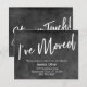 Keep your friends and family up to date with your new address using these simple, elegant announcement cards. Whether you're a newlywed or just want a unique design for letting your tribe know how to find you, this card is versatile enough for anyone. It features pretty typography graphics that read "I've Moved" on the front and "Stay in Touch!" on the back, using a modern, casual, handwritten script font. Use the template fields to add all your own details to personalize this design for your own use. The white type was placed over a dark grey vintage textured grunge background. If you'd rather replace this with a different background image, that's also possible! // 105 //