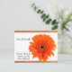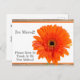 Introducing our moving announcement postcard! Celebrate your new home with our charming design, featuring a rustic wood background and a beautiful orange gerber daisy. Customize the inside text, font, and colours to make it uniquely yours