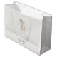 Elegant wedding gift bag featuring a delicate twig enclosed in a circle with a soft ivory and off-white colour palette. The design includes a simulated 3D letterpress effect, creating a refined and textured look. Perfect for presenting favours, welcome gifts, or thank-you tokens, this gift bag adds a sophisticated touch to your wedding celebration.