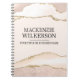 This custom notebook features a modern and elegant theme. A sample name is printed across the front which you can change to include your own custom name or text. A sample job title or business name is printed below. An agate stone pattern in shades of ivory and peach is printed along the top and bottom portions of the binder, and has beautiful accents of gold glitter. The background is a soft ivory colour.