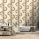 Ivory Beige Brown Grey Circles Waves Lines Pattern Wallpaper