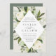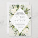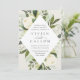 Our Ivory Bloom wedding invitation surrounds your wedding day details with a modern diamond shaped geometric frame of painted watercolor greenery, eucalyptus leaves, botanical foliage and white rose and peony flowers.