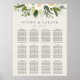 Notre collection de fleurs d'ivoire à mariage florale présente une verdure d'aquarelle délicatement peinte, des feuilles d'eucalyptus, un feuillage botanique vert et des fleurs de pivoines blanches et d'ivoire. Personnalisez cet élégant tableau de sièges de mariage avec vos noms et votre date de mariage, et jusqu'à 12 tables d'hôtes.