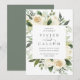 Our Ivory Bloom wedding invitation surrounds your wedding day details with a square frame of painted watercolor greenery, eucalyptus leaves, botanical foliage and white rose and peony flowers.