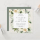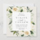 Our Ivory Bloom wedding invitation surrounds your wedding day details with a square frame of painted watercolor greenery, eucalyptus leaves, botanical foliage and white rose and peony flowers.