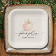 A cute little pumpkin tied with an elegant ivory ribbon highlights these gender neutral baby shower soft ivory square paper plates with "A little pumpkin is on its way" and the mom's name. (Available in pink and blue, too.) MATCHING items in our collection.