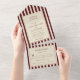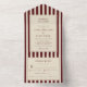 Ivory & Burgundy Stripes Border Retro Wedding All In One Invitation