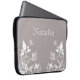 Sweet and dainty Butterfly Floral Electronics Sleeve with a muted dusty grey background and ivory butterflies and floral vine embellishments. This elegant floral laptop sleeve will keep your gadget protected with a dash of girly flair! Easy to customize, simply add the personalized text of your choosing in the text fields provided. Click on the "Customize It" button to find additional personalization options.