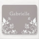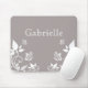 Sweet and dainty Butterfly Floral Mousepad with a muted dusty grey background and ivory butterflies and floral vine embellishments. This elegant floral mouse mat is a lovely choice for adding some girly flair to your workspace. Easy to customize, simply add the personalized text of your choosing in the text fields provided. Click on the "Customize It" button to find additional personalization options.
