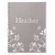 Sweet and dainty Butterfly Floral Notebook with a muted dusty grey background and ivory butterflies and floral vine embellishments. This elegant floral notebook is full of girly flair and is perfect for jotting down notes or whatever else your imagination holds! Easy to customize, simply add the personalized text of your choosing in the text fields provided. Click on the "Customize It" button to find additional personalization options.