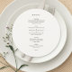 This chic and simple wedding menu card features a set of contemporary fonts in an ebony black, against a lovely soft ivory background. The back of the card includes couple names. Leave the text boxes at the back of the card empty if no text is preferred. The template includes 4 meal and drink sections. A selection of mix and match neutral colours are available in the same collection.