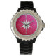 Ivory compass rose - ruby glass background watch