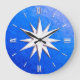 Ivory compass rose - sapphire glass background large clock