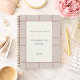 Organize your daily tasks with this sleek modern grid notebook. It features a dusty rose and warm taupe minimalist line pattern set against a warm ivory background. This sophisticated journal is ideal for professionals, students, or home office organization. Gray text.