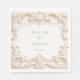 Ivory Elegant Baroque Square Wedding Napkins. Elevate your wedding reception, engagement party, bridal shower or rehearsal dinner with these exquisite Ivory Elegant Baroque Square Paper Wedding Napkins. Featuring intricate, faux three-dimensional baroque scrollwork in a sophisticated ivory hue, these napkins add a touch of timeless opulence to your special day. The ornate border frames your names and wedding date beautifully, creating a truly personalized and memorable setting for your guests. Perfect for elegant, classic, or vintage-inspired weddings, these napkins are sure to impress and complement your traditional wedding decor with their refined charm and luxurious feel.