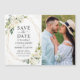 Ivory Green Floral Geometric Photo Save the Date Magnet Magnetic Card