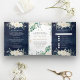 Ivory Floral Sage Green Leaves Navy Blue Wedding Tri-Fold Invitation