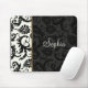 This elegant looking ivory, gold, and black damask mousepad has a spot for your name, monogram, or other text.