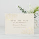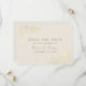 Elegant Save the Date card with delicate gold floral accents on a soft ivory background. Features timeless script and serif fonts with full customization for your names and date. A romantic and classic way to announce your wedding in style.