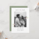 Whimsical and chic. This lovely white & sage green wedding save the date card features a lovely blush pink watercolor floral accents and couple photo, alongside a contemporary set of fonts. Included at the back is optional text.