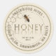 Personalize this honey label with your apiary name, beekeeper, address and net weight. Honeycomb on an ivory background. The word HONEY is written in a metallic gold font, and is reflected again beneath the word. Realistic Bee near honeycomb. Common honey net weight conversions: 8oz (227g), 12oz (340g), 16oz (454g), 32oz (907g), 5lb (2.27kg).