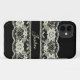 Ribbons of ivory lace and your name on a black background decorate this fashionable case.