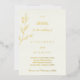 Announce your special day with timeless elegance with this personalized, minimalist wedding invitation, designed for couples who appreciate understated beauty. This elegant design features a delicate, minimalist line drawing of a botanical olive branch with olives and leaves — a symbol of peace and enduring love. Set against a warm, stylish ivory background, the design and text is brought to life with real gold foil detailing, adding a luxurious touch to the natural simplicity. Elegant calligraphy script paired with modern typography fonts enhances the overall sophistication, while the couple's monogram is beautifully incorporated as a personal and graceful accent. Perfect for modern weddings with a natural, earthy theme, this invitation sets the tone for a refined and meaningful celebration.