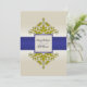 Ivory Navy and Gold Damask Wedding Invitation