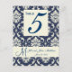 Ivory Navy Damask Wedding Table Number Postcard