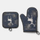 Ivory Reindeer Christmas | Blue Oven Mitt & Pot Holder Set