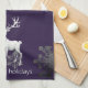 Brighten your kitchen with this Purple Ivory Reindeer Christmas Kitchen Towel, a charming addition to reindeer theme kitchen gifts and Christmas kitchen accents. This beautifully crafted towel features a winter theme with an ivory reindeer and elegant snowflakes, arranged in a simple layout for a touch of festive elegance. The modern typography displaying "Happiest Holidays" spreads warm holiday wishes, making it perfect for everyday use or gifting. Soft, absorbent, and durable, this towel adds style and functionality to your holiday kitchen. Elevate your seasonal decor with this delightful essential.