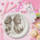 Ivory Striped Bow Baby Shower Paper Plate