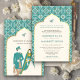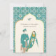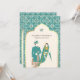 Ivory Teal Pattern Anand Karaj Sikh Wedding Invitation