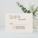 Elegant wedding RSVP card done in an ivory textured looking front with fancy gold tone graphic text reading RSVP. The back of the card is done in a tan and ivory flourish damask background. Personalize all the text for your special day. Matching products are available.
