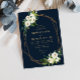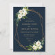Ivory white floral geometrical navy wedding invitation