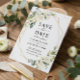 Ivory White Green Floral Modern Gold Geometric Save The Date